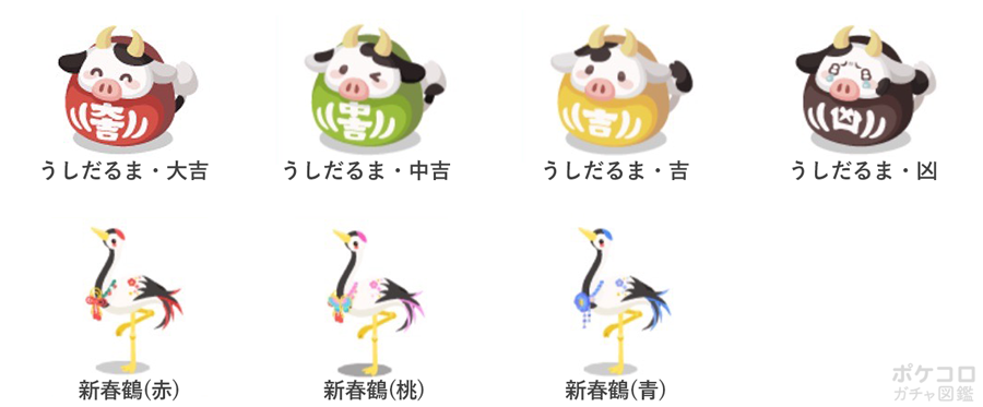 うしだるま・大吉 うしだるま・中吉 うしだるま・吉 うしだるま・凶 新春鶴(赤) 新春鶴(桃) 新春鶴(青)