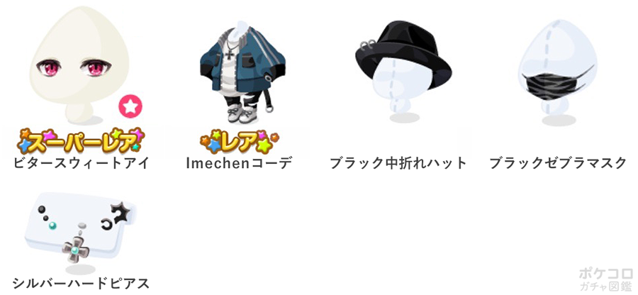 ★ビタースウィートアイ(顔パーツ) ☆Imechenコーデ ブラック中折れハット ブラックゼブラマスク シルバーハードピアス
