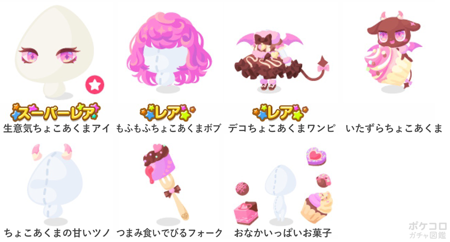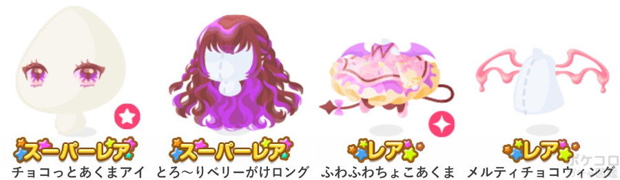 ★チョコっとあくまアイ(顔パーツ) ★とろ〜りベリーがけロング ☆ふわふわちょこあくま(アクション付きfアイテム) ☆メルティチョコウィング
