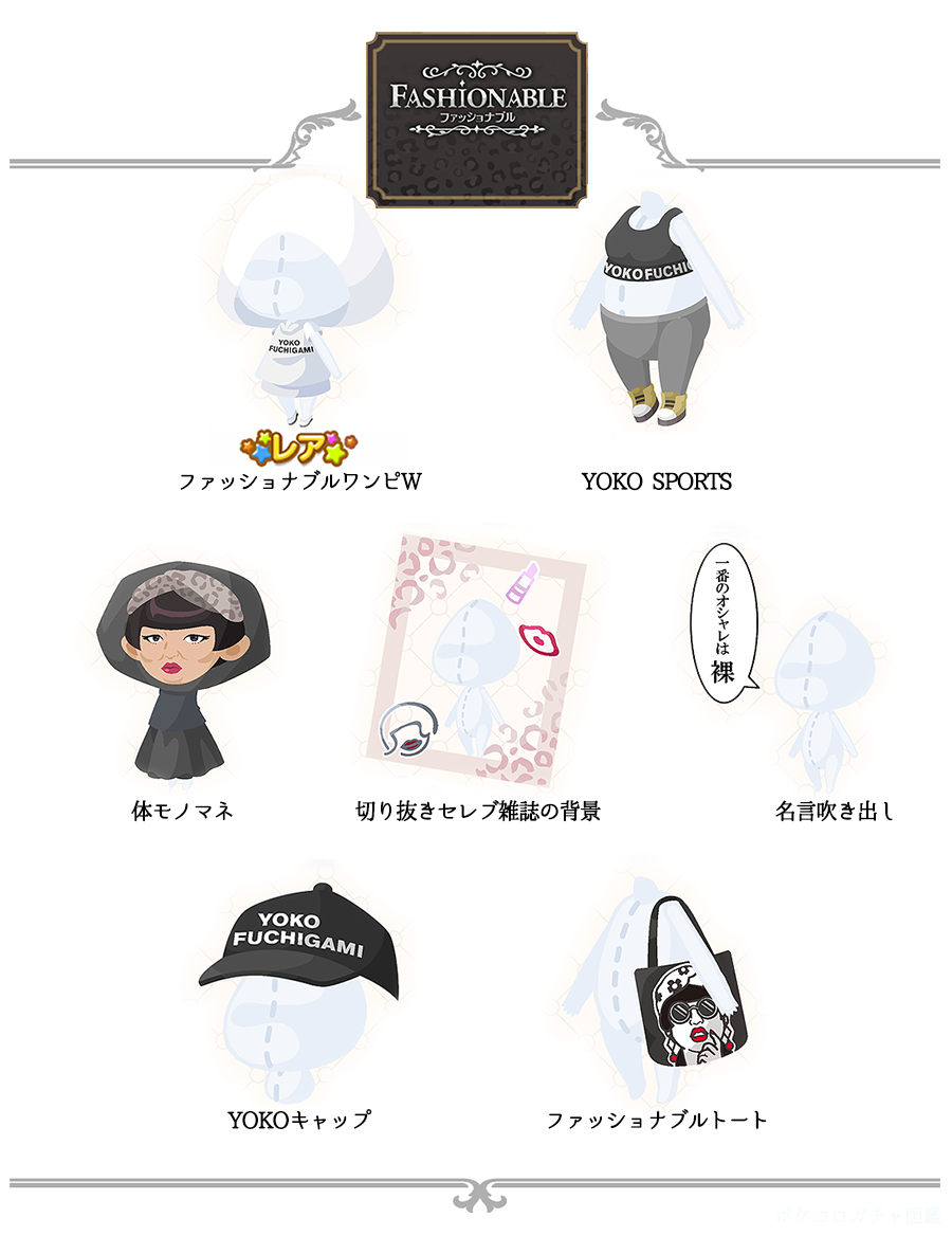 ☆ファッショナブルワンピW(850) YOKO SPORTS(650) 体モノマネ(650) 切り抜きセレブ雑誌の背景(650) 名言吹き出し(650) YOKOキャップ(550) ファッショナブルトート(550)