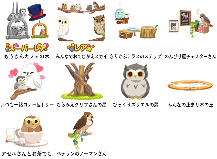 ★もうきんカフェの木 No.1130 ふくろうカップカフェオレ もうきんカフェの実 ☆みんなでおでむかえスカイ きりかぶテラスのステップ のんびり屋チェスターさん いつも一緒コナー&ホリー ちらみえクリフさんの星 びっくりズリエルの扉 みんなの止まり木の丘 アゼルさんとお茶でも ベテランのノーマンさん