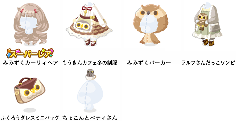 ★みみずくカーリィヘア もうきんカフェ冬の制服 みみずくパーカー ラルフさんだっこワンピ ふくろうダレスミニバッグ ちょこんとぺティさん