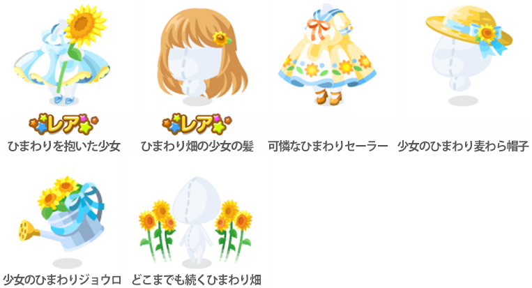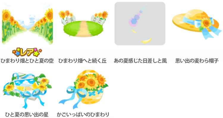 ☆ひまわり畑とひと夏の空 ひまわり畑へと続く丘 あの夏感じた日差しと風 思い出の麦わら帽子 ひと夏の思い出の星 かごいっぱいのひまわり