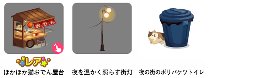 ☆ほかほか猫おでん屋台(アクションアイテム) 夜を温かく照らす街灯 夜の街のポリバケツトイレ