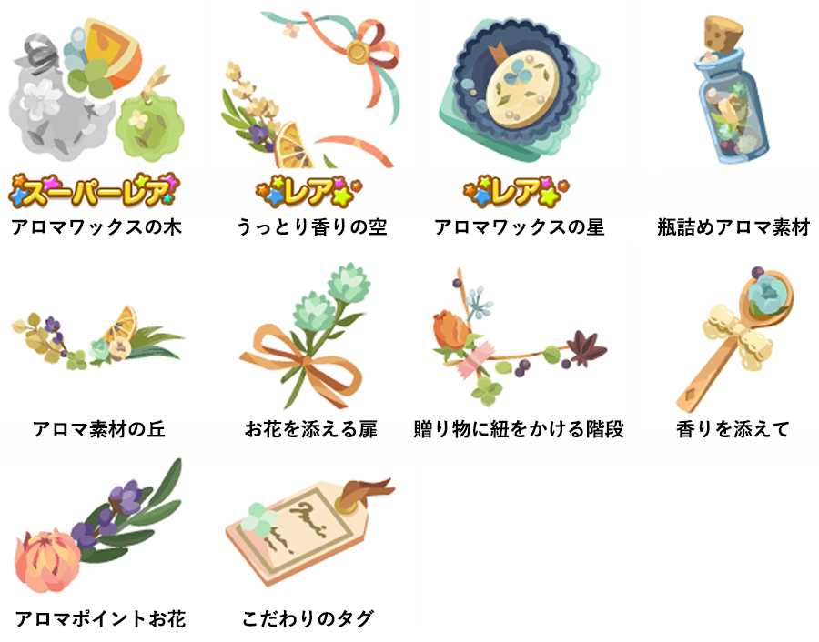 ★アロマワックスの木 No.1167 アロマワックスラーメン アロマの贈り物の実 ☆うっとり香りの空 ☆アロマワックスの星 瓶詰めアロマ素材 アロマ素材の丘 お花を添える扉 贈り物に紐をかける階段 香りを添えて アロマポイントお花 こだわりのタグ