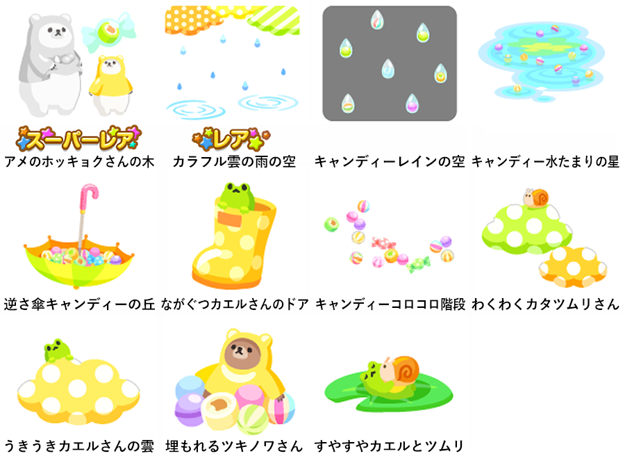 ★アメのホッキョクさんの木 No.1184 雨粒水晶餃子 レインキャンディーの実 ☆カラフル雲の雨の空 キャンディーレインの空 キャンディー水たまりの星 逆さ傘キャンディーの丘 ながぐつカエルさんのドア キャンディーコロコロ階段 わくわくカタツムリさん うきうきカエルさんの雲 埋もれるツキノワさん すやすやカエルとツムリ