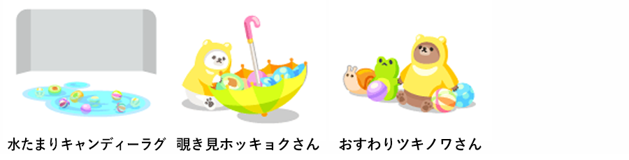 水たまりキャンディーラグ 覗き見ホッキョクさん おすわりツキノワさん