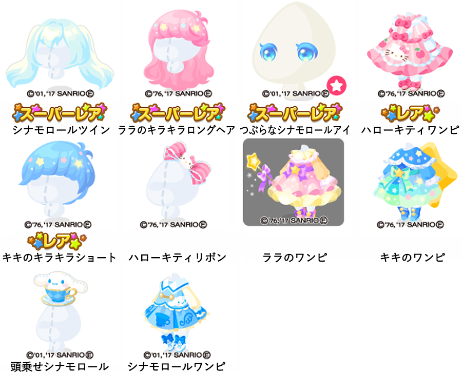 ★シナモロールツイン ★ララのキラキラロングヘア ★つぶらなシナモロールアイ(顔パーツ) ☆ハローキティワンピ ☆キキのキラキラショート ハローキティリボン ララのワンピ キキのワンピ 頭乗せシナモロール シナモロールワンピ