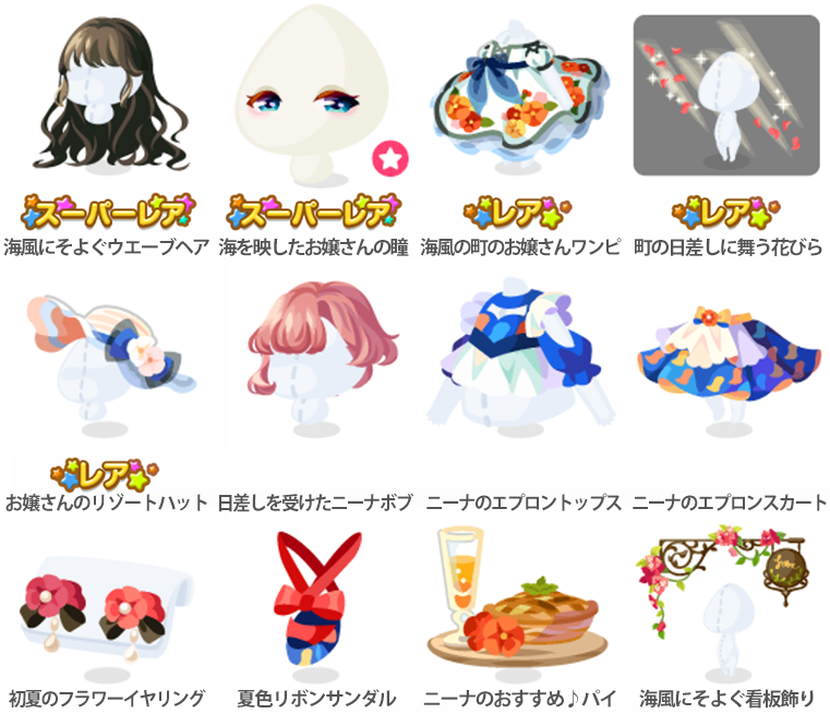 ★海風にそよぐウエーブヘア ★海を映したお嬢さんの瞳(顔パーツ) ☆海風の町のお嬢さんワンピ ☆町の日差しに舞う花びら ☆お嬢さんのリゾートハット 日差しを受けたニーナボブ ニーナのエプロントップス ニーナのエプロンスカート 初夏のフラワーイヤリング 夏色リボンサンダル ニーナのおすすめ♪パイ 海風にそよぐ看板飾り