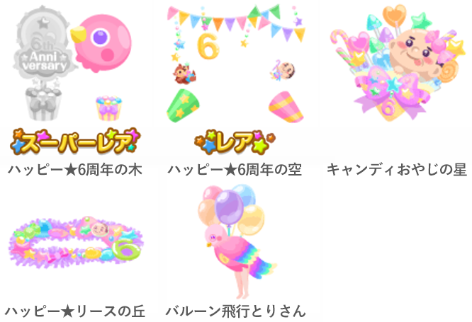 ★ハッピー★6周年の木 No.1042 6周年お祝いのあんまん 6周年お祝いの実 ☆ハッピー★6周年の空 キャンディおやじの星 ハッピー★リースの丘 バルーン飛行とりさん