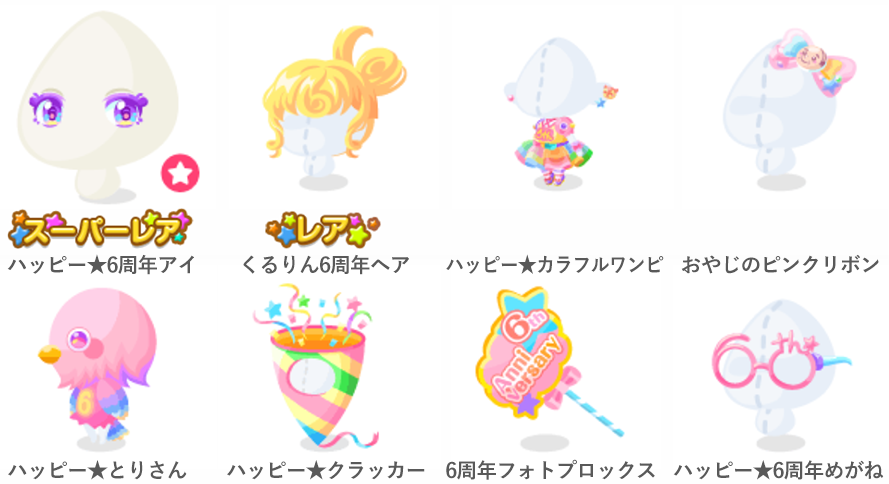 ★ハッピー★6周年アイ(顔パーツ) ☆くるりん6周年ヘア ハッピー★カラフルワンピ おやじのピンクリボン ハッピー★とりさん ハッピー★クラッカー 6周年フォトプロックス ハッピー★6周年めがね