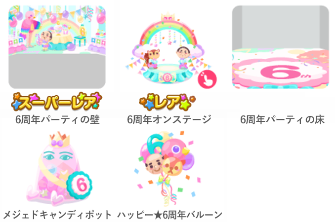 ★6周年パーティの壁 ☆6周年オンステージ(アクションアイテム) 6周年パーティの床 メジェドキャンディポット ハッピー★6周年バルーン