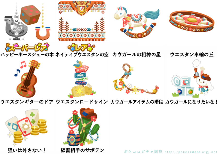 ★ハッピーホースシューの木 No.1428 荒野のサボテンステーキ ウエスタンサイコロの実 ☆ネイティブウエスタンの空 カウガールの相棒の星 ウエスタン車輪の丘 ウエスタンギターのドア ウエスタンロードサイン カウガールアイテムの階段 カウガールになりたいな! 狙いは外さない! 練習相手のサボテン