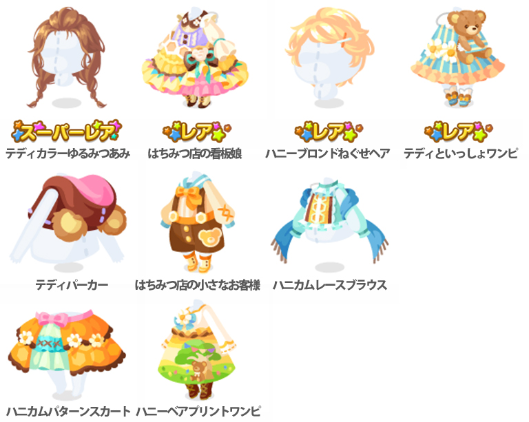 ★テディカラーゆるみつあみ ☆はちみつ店の看板娘 ☆ハニーブロンドねぐせヘア ☆テディといっしょワンピ テディパーカー はちみつ店の小さなお客様 ハニカムレースブラウス ハニカムパターンスカート ハニーベアプリントワンピ