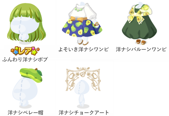 ☆ふんわり洋ナシボブ よそいき洋ナシワンピ 洋ナシバルーンワンピ 洋ナシベレー帽 洋ナシチョークアート