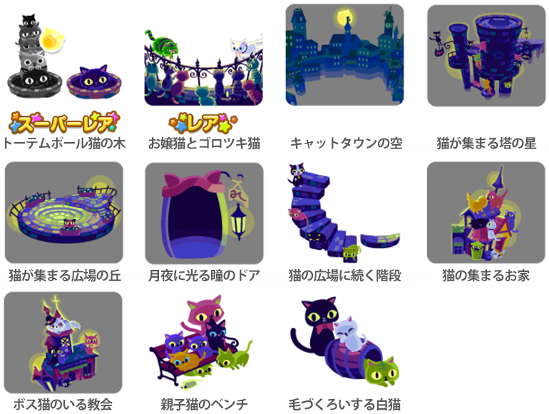 ★トーテムポール猫の木 No.1032 キャットムーン小籠包 キャットムーンの実 ☆お嬢猫とゴロツキ猫 キャットタウンの空 猫が集まる塔の星 猫が集まる広場の丘 月夜に光る瞳のドア 猫の広場に続く階段 猫の集まるお家 ボス猫のいる教会 親子猫のベンチ 毛づくろいする白猫