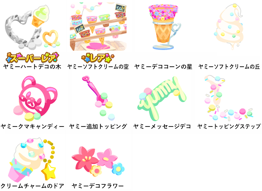 ★ヤミーハートデコの木 No.1207 ヤミーデコクリーム煮 デコソフトの実 ☆ヤミーソフトクリームの空 ヤミーデココーンの星 ヤミーソフトクリームの丘 ヤミークマキャンディー ヤミー追加トッピング ヤミーメッセージデコ ヤミートッピングステップ クリームチャームのドア ヤミーデコフラワー