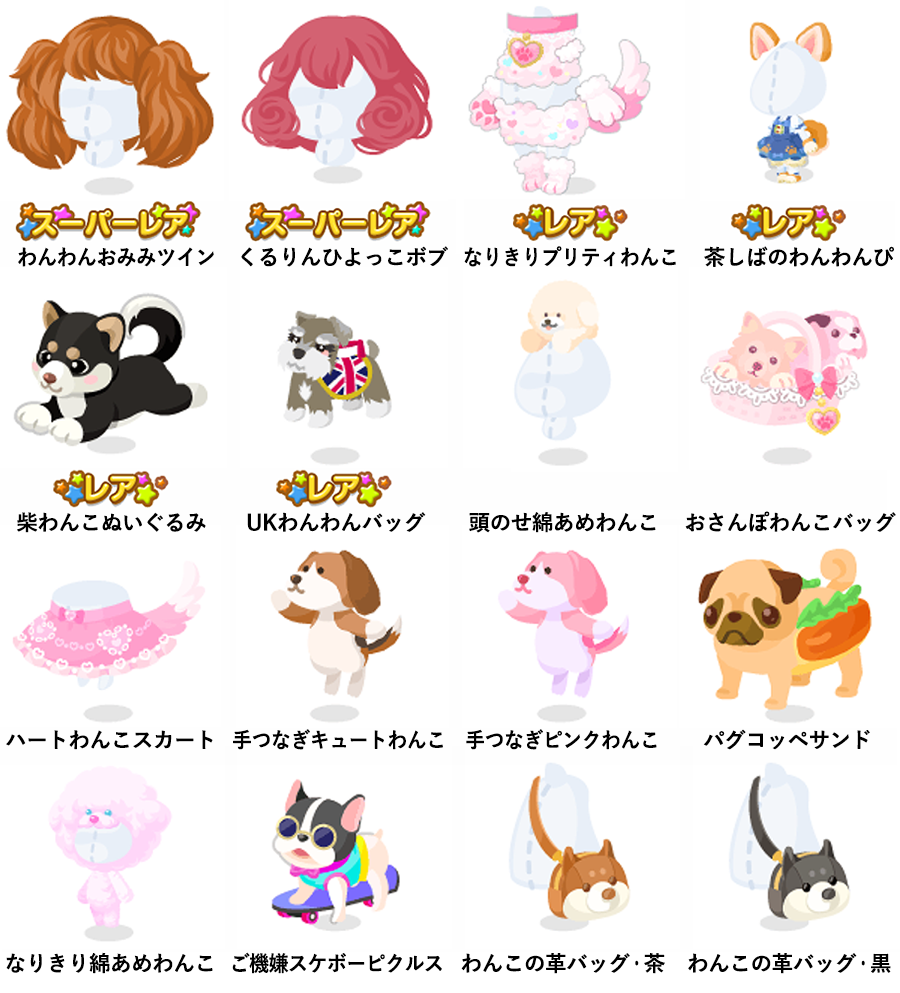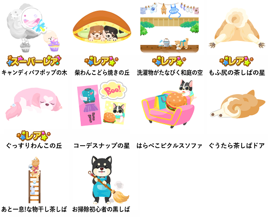 過去のガチャからピックアップ ・2012年5月 おでかけロンドン ・2013年8月 サマーわんこ福袋 ・2014年3月 キュートアニマル・カラフルアニマル ・2014年7月 抹茶黒蜜わんこ福袋 ・2014年9月 パリジェンヌ・ライフ ・2015年1月 わんわんベーカリー ・2015年6月 わたぐもキャンディパフ ・2015年12月 わんだふる探偵ポメット ・2016年3月 Yummyスナップ! ・2016年4月 ダルメシアン♪ノート ・2016年8月 しばの手も借りたい ・2017年1月 柴わんこの和雑貨店