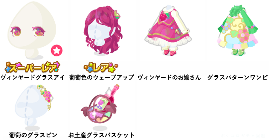 ★ヴィンヤードグラスアイ(顔パーツ) ☆葡萄色のウェーブアップ ヴィンヤードのお嬢さん グラスパターンワンピ 葡萄のグラスピン お土産グラスバスケット