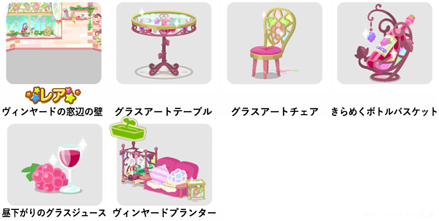☆ヴィンヤードの窓辺の壁 グラスアートテーブル グラスアートチェア きらめくボトルバスケット 昼下がりのグラスジュース ヴィンヤードプランター