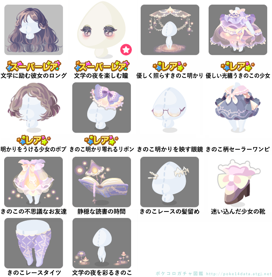 ★文学に励む彼女のロング ★文学の夜を楽しむ瞳(顔パーツ) ☆優しく照らすきのこ明かり ☆優しい光纏うきのこの少女 ☆明かりをうける少女のボブ ☆きのこ明かり零れるリボン きのこ明かりを映す眼鏡 きのこ柄セーラーワンピ きのこの不思議なお友達 静穏な読書の時間 きのこレースの髪留め 迷い込んだ少女の靴 きのこレースタイツ 文学の夜を彩るきのこ