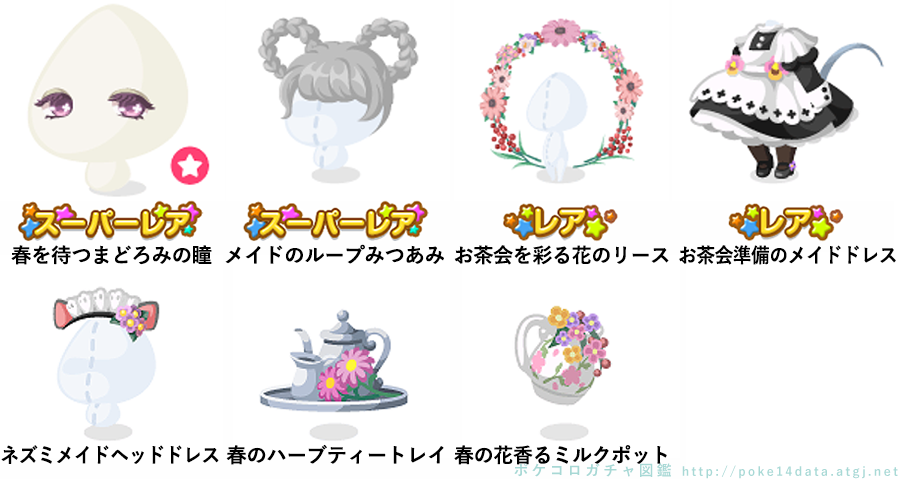 ★春を待つまどろみの瞳(顔パーツ) ★メイドのループみつあみ ☆お茶会を彩る花のリース ☆お茶会準備のメイドドレス ネズミメイドヘッドドレス 春のハーブティートレイ 春の花香るミルクポット