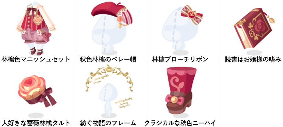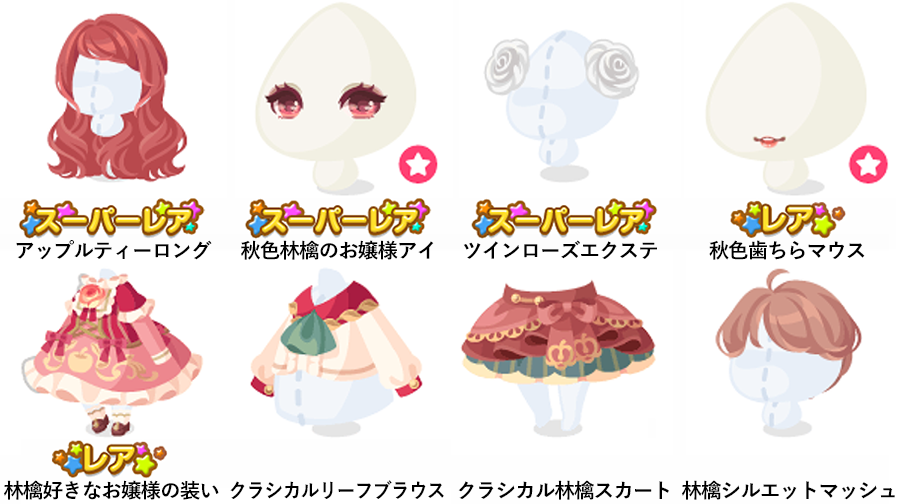★アップルティーロング ★秋色林檎のお嬢様アイ(顔パーツ) ★ツインローズエクステ ☆秋色歯ちらマウス(顔パーツ) ☆林檎好きなお嬢様の装い クラシカルリーフブラウス クラシカル林檎スカート 林檎シルエットマッシュ 林檎色マニッシュセット 秋色林檎のベレー帽 林檎ブローチリボン 読書はお嬢様の嗜み 大好きな薔薇林檎タルト 紡ぐ物語のフレーム クラシカルな秋色ニーハイ