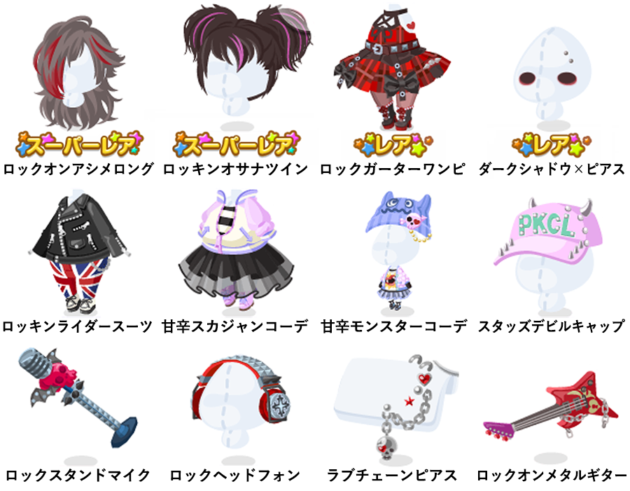★ロックオンアシメロング ★ロッキンオサナツイン ☆ロックガーターワンピ ☆ダークシャドウ×ピアス ロッキンライダースーツ 甘辛スカジャンコーデ 甘辛モンスターコーデ スタッズデビルキャップ ロックスタンドマイク ロックヘッドフォン ラブチェーンピアス ロックオンメタルギター