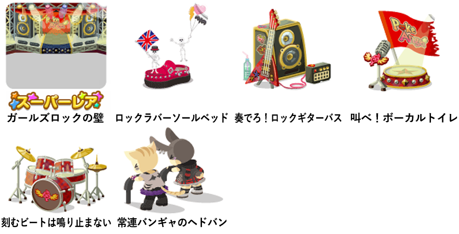 過去のガチャ・スクラッチからピックアップ ・2014年6月 ロックライブ! ・2015年6月 ハード★ポケコロック ・2015年10月 甘辛ガーリーロック ・2016年6月 Rock on!ライブ ・2017年6月 ガールズ♡ロック