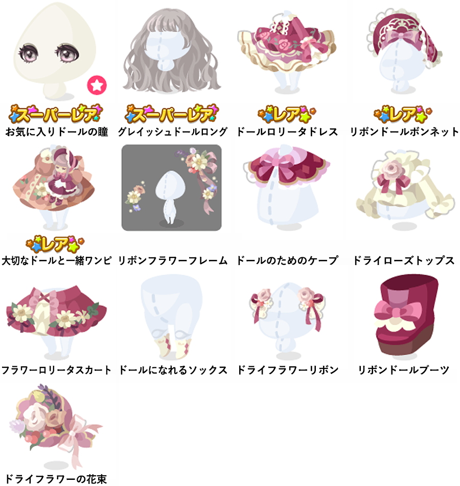 ★お気に入りドールの瞳(顔パーツ) ★グレイッシュドールロング ☆ドールロリータドレス ☆リボンドールボンネット ☆大切なドールと一緒ワンピ リボンフラワーフレーム ドールのためのケープ ドライローズトップス フラワーロリータスカート ドールになれるソックス ドライフラワーリボン リボンドールブーツ ドライフラワーの花束