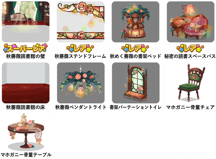 【イベントで復刻】 ・2020.10.20〜11.02 『バスタイムマシン〜ふわふわでしあわせ〜』 ・2025.04.10〜2025.05.09 『5種類のアイテムがもらえるやることメモをクリアしよう♪』 (秋薔薇メッシュロング のみ復刻) 【通常ガチャで復刻】 ・2023.09.03〜2023.09.03