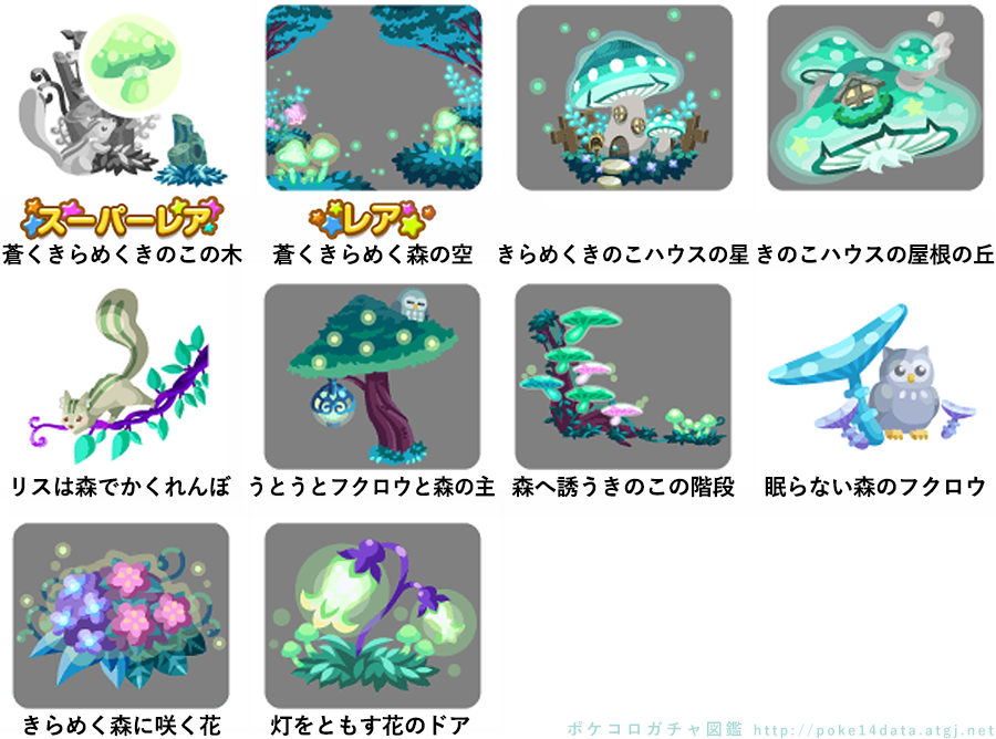 ★蒼くきらめくきのこの木 No.1448 きらめくきのこマフィン 蒼くきらめくきのこの実 ☆蒼くきらめく森の空 きらめくきのこハウスの星 きのこハウスの屋根の丘 リスは森でかくれんぼ うとうとフクロウと森の主 森へ誘うきのこの階段 眠らない森のフクロウ きらめく森に咲く花 灯をともす花のドア