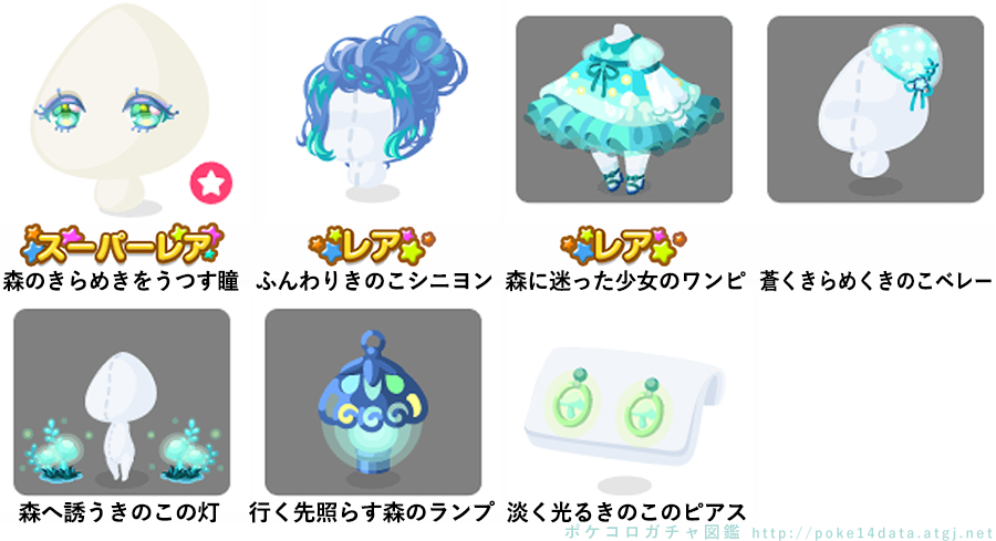 ★森のきらめきをうつす瞳(顔パーツ) ☆ふんわりきのこシニヨン ☆森に迷った少女のワンピ 蒼くきらめくきのこベレー 森へ誘うきのこの灯 行く先照らす森のランプ 淡く光るきのこのピアス