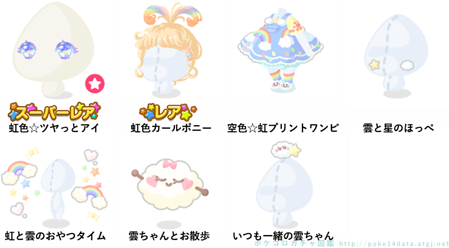 ★虹色☆ツヤっとアイ(顔パーツ) ☆虹色カールポニー 空色☆虹プリントワンピ 雲と星のほっぺ 虹と雲のおやつタイム 雲ちゃんとお散歩 いつも一緒の雲ちゃん