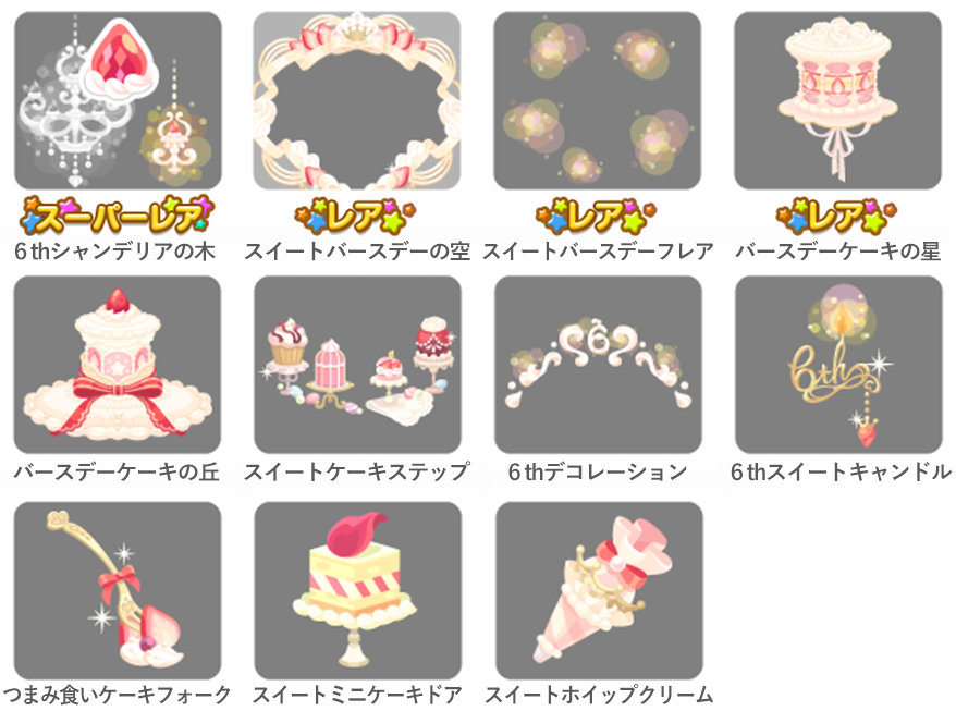 ★6thシャンデリアの木 No.1043 スイートバースデーケーキ スイートバースデーの実 ☆スイートバースデーの空 ☆スイートバースデーフレア ☆バースデーケーキの星 バースデーケーキの丘 スイートケーキステップ 6thデコレーション 6thスイートキャンドル つまみ食いケーキフォーク スイートミニケーキドア スイートホイップクリーム