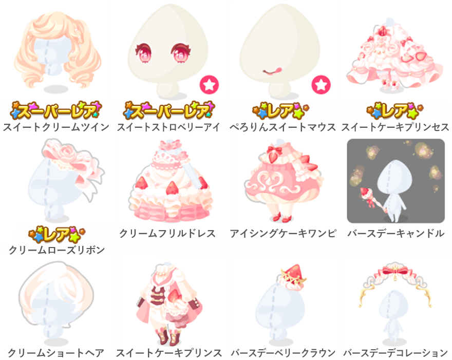 ★スイートクリームツイン ★スイートストロベリーアイ(顔パーツ) ☆ぺろりんスイートマウス(顔パーツ) ☆スイートケーキプリンセス ☆クリームローズリボン クリームフリルドレス アイシングケーキワンピ バースデーキャンドル クリームショートヘア スイートケーキプリンス バースデーベリークラウン バースデーデコレーション