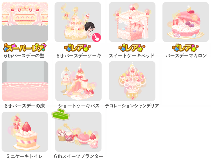 ★6thバースデーの壁 ☆6thバースデーケーキ(アクションアイテム) ☆スイートケーキベッド ☆バースデーマカロン 6thバースデーの床 ショートケーキバス デコレーションシャンデリア ミニケーキトイレ 6thスイーツプランター