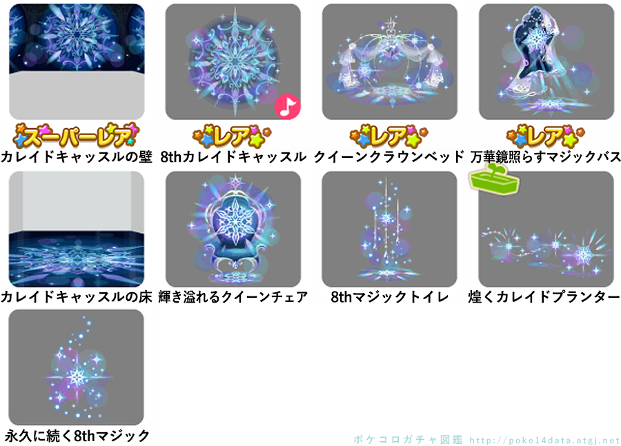 ★カレイドキャッスルの壁 ☆8thカレイドキャッスル(ネイロアイテム) ☆クイーンクラウンベッド ☆万華鏡照らすマジックバス カレイドキャッスルの床 輝き溢れるクイーンチェア 8thマジックトイレ 煌くカレイドプランター 永久に続く8thマジック
