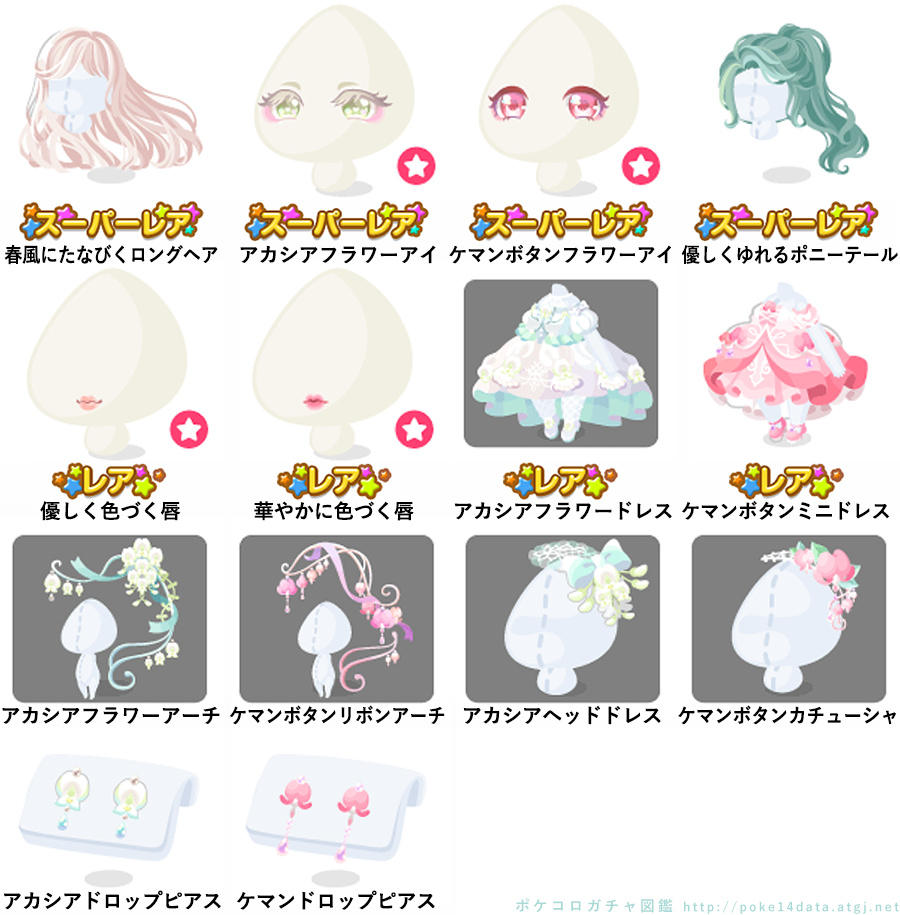 ★春風にたなびくロングヘア ★アカシアフラワーアイ(顔パーツ) ★ケマンボタンフラワーアイ(顔パーツ) ★優しくゆれるポニーテール ☆優しく色づく唇(顔パーツ) ☆華やかに色づく唇(顔パーツ) ☆アカシアフラワードレス ☆ケマンボタンミニドレス アカシアフラワーアーチ ケマンボタンリボンアーチ アカシアヘッドドレス ケマンボタンカチューシャ アカシアドロップピアス ケマンドロップピアス