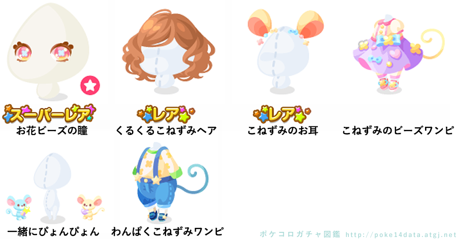 ★お花ビーズの瞳(顔パーツ) ☆くるくるこねずみヘア ☆こねずみのお耳 こねずみのビーズワンピ 一緒にぴょんぴょん わんぱくこねずみワンピ