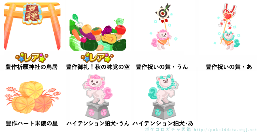 ☆豊作祈願神社の鳥居 ☆豊作御礼!秋の味覚の空 豊作祝いの舞・うん 豊作祝いの舞・あ 豊作ハート米俵の星 ハイテンション狛犬・うん ハイテンション狛犬・あ