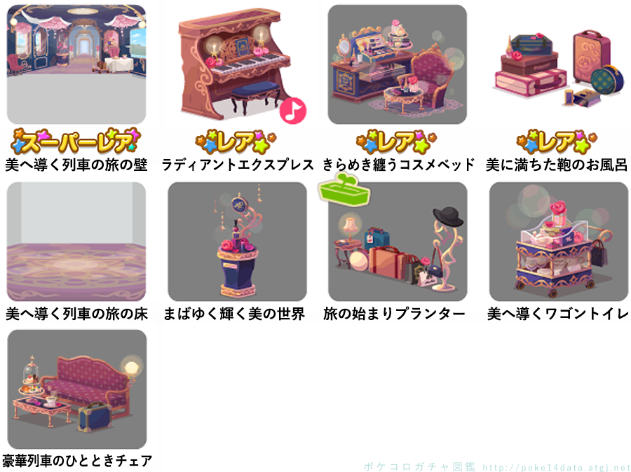 ★美へ導く列車の旅の壁 ☆ラディアントエクスプレス(ネイロアイテム) ☆きらめき纏うコスメベッド ☆美に満ちた鞄のお風呂 美へ導く列車の旅の床 まばゆく輝く美の世界 旅の始まりプランター 美へ導くワゴントイレ 豪華列車のひとときチェア