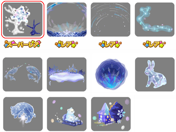 ★ポラリスと白銀の原野の壁 ☆星屑たゆたうガラスドーム(アクションアイテム) ☆雪原に瞬くプリズム ☆迷子星のこぐま座 輝くクジラ座 煌くイッカク・アザラシ座 耀くウサギ・キツネ座 雪原の風景ラグ ポラリスと白銀の原野の床