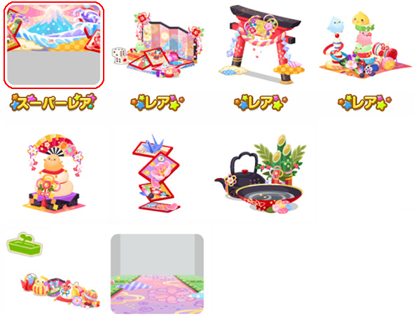 ★夢色遊ぶ初日の出の壁 ☆初夢遊ぶ歌留多の宴 ☆新風舞う祝いの大鳥居 ☆危機一髪お正月遊びベッド ぴよみかん鏡餅のトイレ 夢が彩る歌留多尽くし ほろよいお屠蘇のお風呂 お正月あそびのプランター 夢色遊ぶ初日の出の床