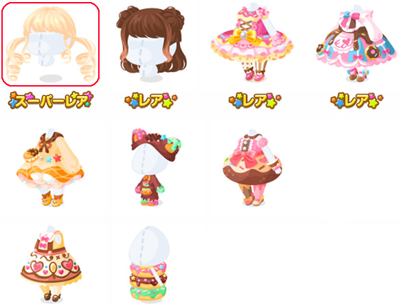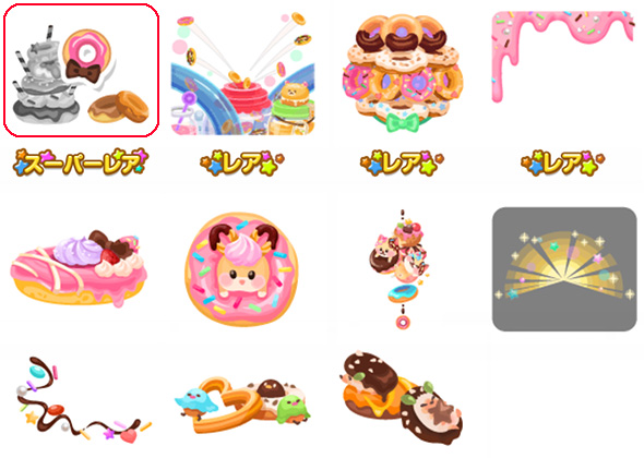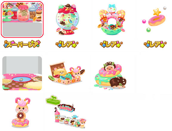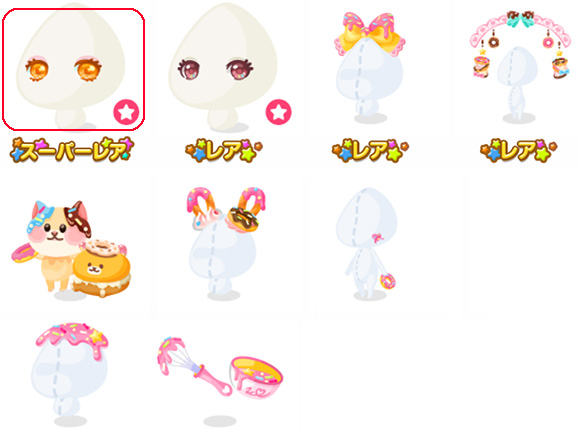 ★ハピネス☆ドーナッツアイ(顔パーツ) シュガードーナッツアイ② ☆ぱくっ!ドーナッツマウス(顔パーツ) 同種小物Rアイテム③ アニマルドーナッツ! 同種小物Nアイテム⑤