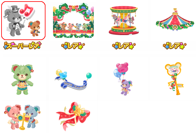 ★Xmas遊園地の壁 ☆うきうき☆Xmasツリー ☆楽しいXmasマーチベア(ネイロアイテム) ☆メリーゴーランドの魔法♪(アクションアイテム) Xmas遊園地の床 ノリノリ♪ダンサートイレ マーチングベアのお風呂 Xmasの恋人プランター バルーン☆マーチベア