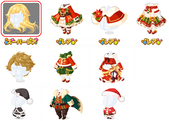 ★ふわり舞うサンタロング ☆頑張り屋の姉サンタ ☆サンタのあったかポンチョ ☆負けず嫌いのロリサンタ 外はねサンタショート のんびり屋の弟サンタ 魅惑のセクシーサンタ 何かを企む黒サンタ 頼れるダンディサンタ みんな大好きサンタさん