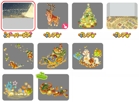 ★クリスマスを見下ろす壁 ☆サンタのエーストナカイ(アクションアイテム) ☆光輝くクリスマスツリー ☆クリスマスを見下ろす床 空からメリークリスマス サンタのソリベッド プレゼントの木馬トイレ 光の贈りものお風呂 サンタの零したプランター