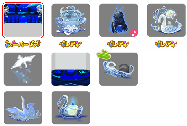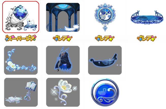★青月照らす黄泉の壁 ☆絵画に鎖された白鳥ベッド ☆黄泉へ誘う使者の鎮魂歌(ネイロアイテム) ☆トゥオネラの白鳥のお風呂 消えゆくトゥオネラの白鳥 時を彷徨う黄泉の床 白鳥と黒鳥のプランター 沈みかける白鳥像の椅子 白鳥のキャンドルトイレ