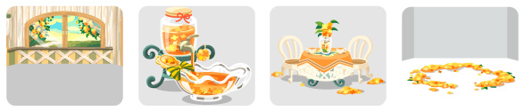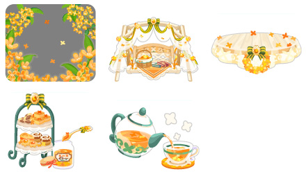 ☆秋空に咲く金木犀の壁 金木犀ジャムのお風呂 金木犀香るテーブルセット 金木犀の花びらラグ